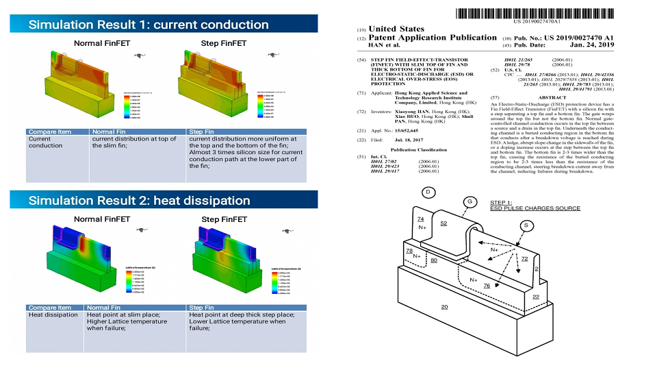 2017 US20190027470(2019.12授权号:10510743)用于静电放电( ESD )或过度电性应力( EOS )保护的阶梯鳍式场效应晶体管( FINFET )。 2004 CN200420083041.3(2006年申请许可,CN2755619Y公开)封装级可靠性模型参数提取系统。 更多请进